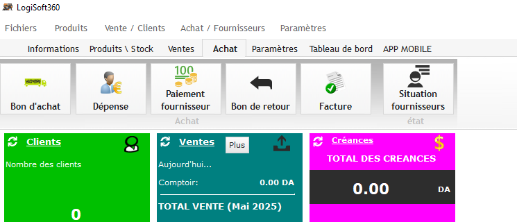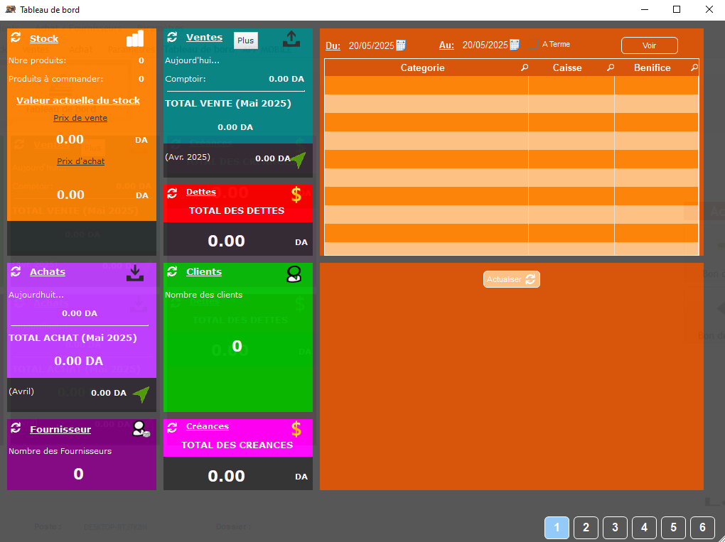 7- Tableau de bord pour analyser les données (vente, achat, stock, caisse)